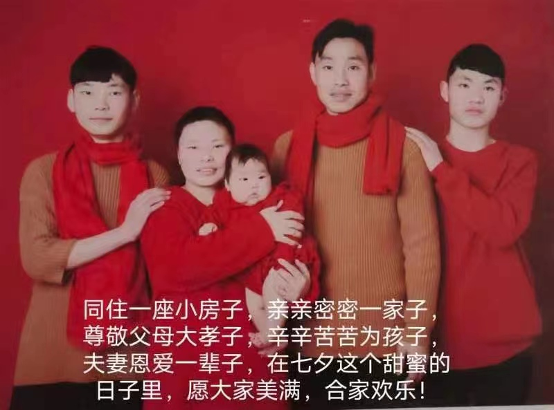 为引导同学们追求爱情忠贞美满、家庭和睦幸福的美好生活。各班级组织开展“最美家庭,全家福征集活动”,同学们积极分享自己的全家福合照,并附上了关于七夕的祝福语。
