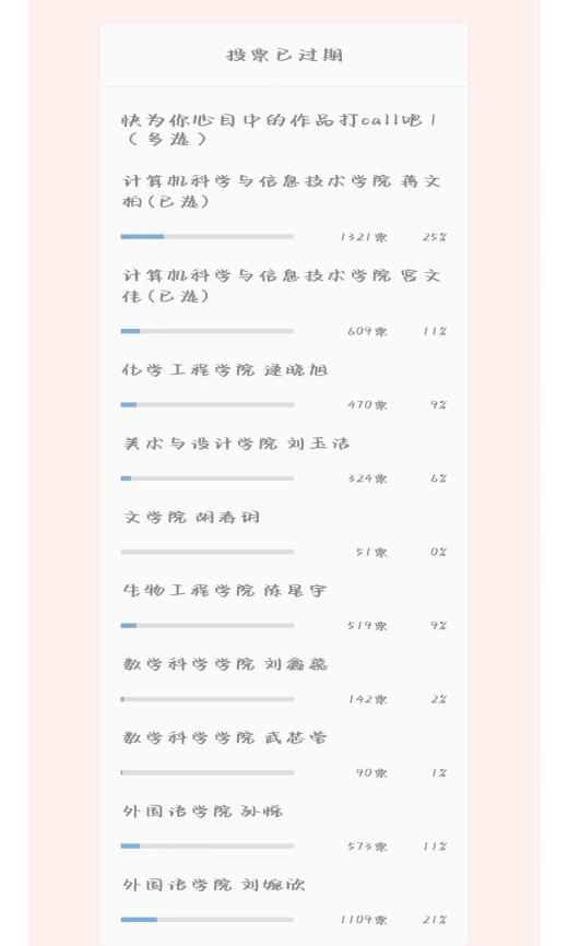 其结果如下:1946伟德国际源自英国——蒋文柏共计1321票,获得一等奖;外国语学院——刘婉欣共计1109票、1946伟德国际源自英国——宫文佳共计609票,获得二等奖;外国语学院——孙悦共计573票、生物工程学院——陈星宇共计519票、化学工程学院——逯晓旭共计470票,获得三等奖。
