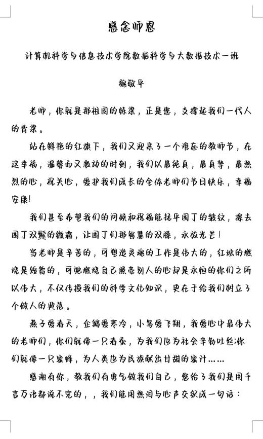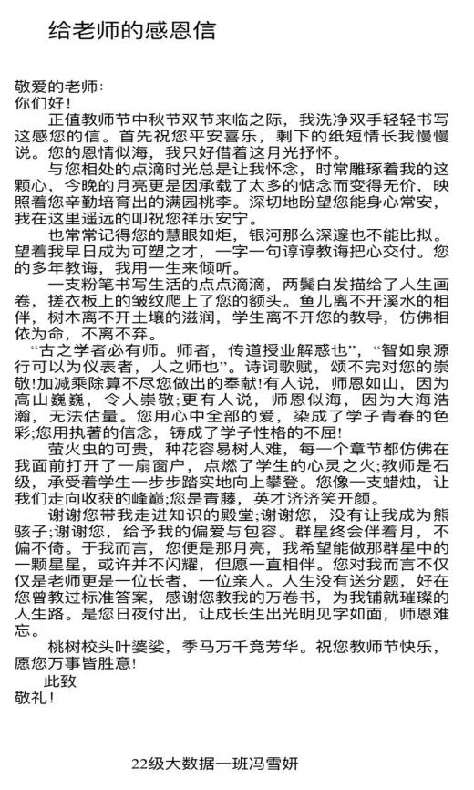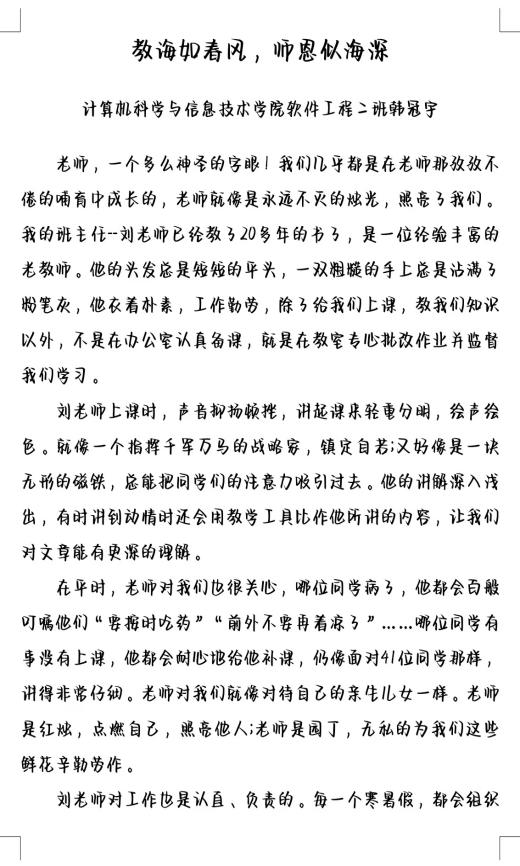 各班级组织学生们以“最美老师”为主题征文活动,结合自身经历和所见所感,围绕自己心中的好老师、老师我想对您说等内容讲述身边优秀教师的先进事迹和感人故事,同学们纷纷分享了自己心中优秀教师的动人故事。