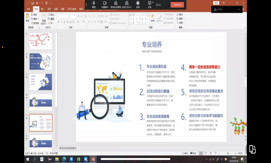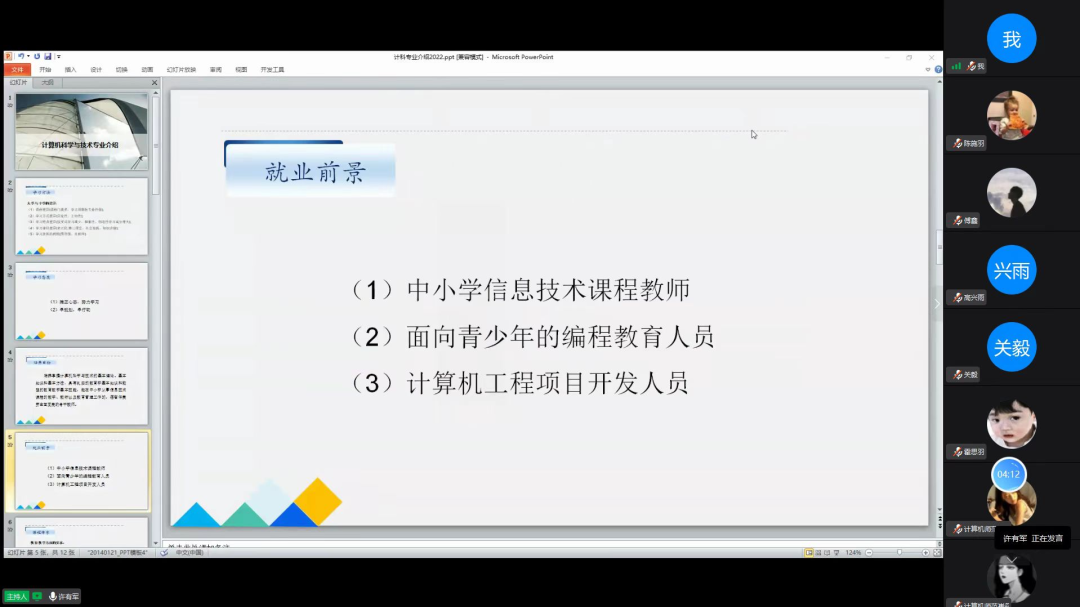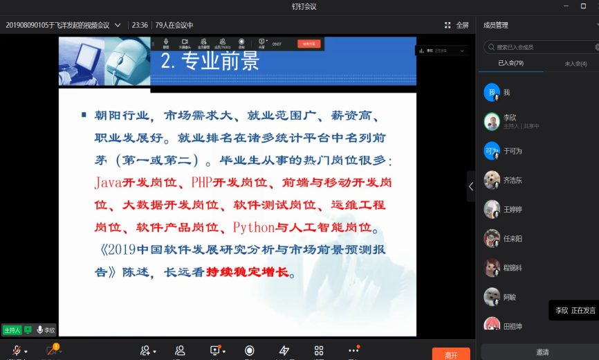 为让2022级新生进一步了解计算机学院的各个专业,我院特举行线上钉钉会议--新生入学教育之专业介绍,让还未入学的新生们对自己所学的专业有更深入的认识。