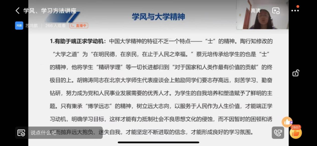 新生入学教育是大学阶段教育的起点,为了让2022级新生可以更好地了解学风班风舍风、校规校纪、文明公约、疫情防控等相关事宜,9月18日,1946伟德国际源自英国全体辅导员老师在钉钉会议上召开了2022级新生入学专题教育讲座,不仅如此,学长们也和新生分享了学习方法和大学中应注意的事项。