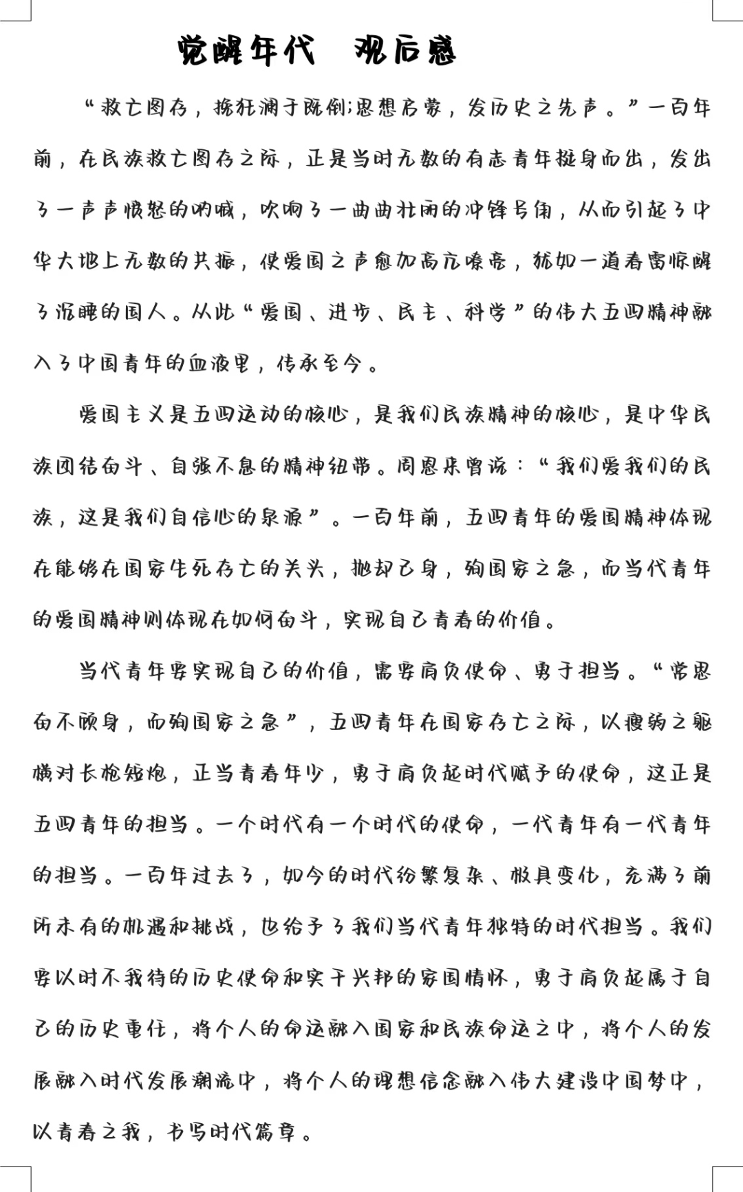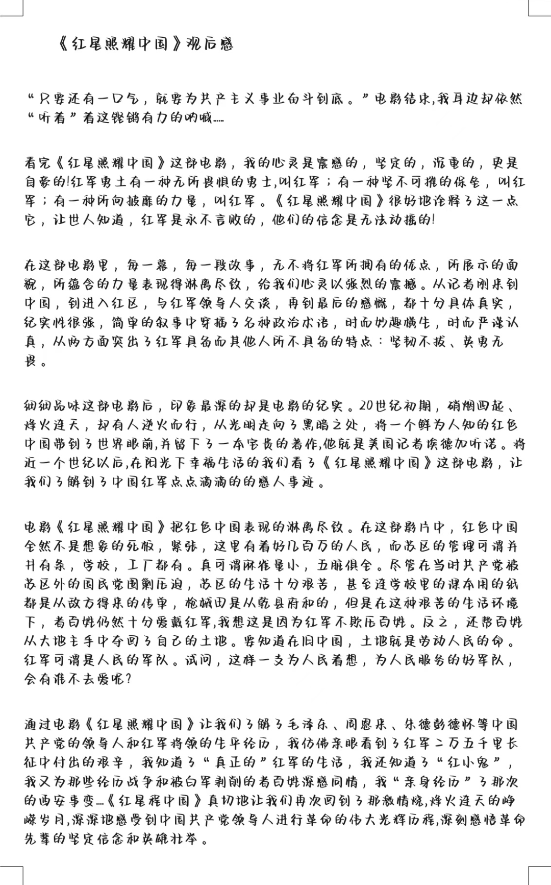 赓续红色血脉,信仰永不磨灭。通过观看红色影片,重温红色岁月,让大家接受了一系列的精神洗礼。同学们观看过后对革命先辈们有了更深一步的认识,纷纷写下了自己的观后感。在中华人民共和国成立73周年之际,让我们不忘历史,昂扬向上,为中华民族复兴的中国梦贡献自己的力量。