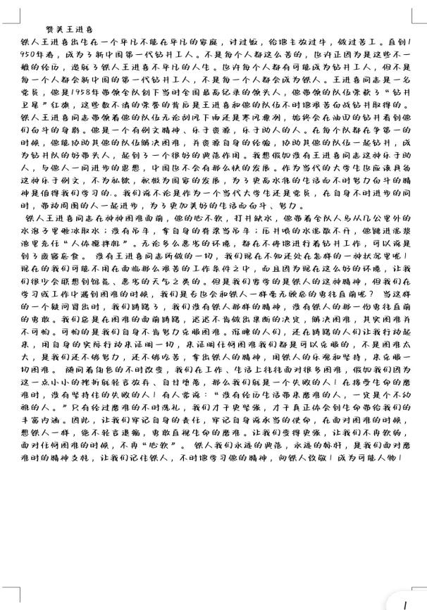 铁人精神是永不磨灭的精神丰碑、是中华民族伟大精神中的瑰宝、是在新时代依旧闪亮的航标。铁人王进喜虽已离开我们52年了,但铁人精神却激励了一代又一代的中国石油人,计科学子们看到石油前辈们顽强拼搏的样子之后,深深感悟到如今所处的幸福生活来之不易,纷纷写下了观看直播后的感想,计科学子们用真挚的文字表达对铁人王进喜的敬佩之情。