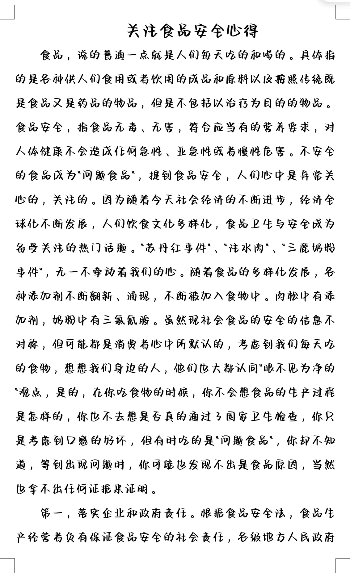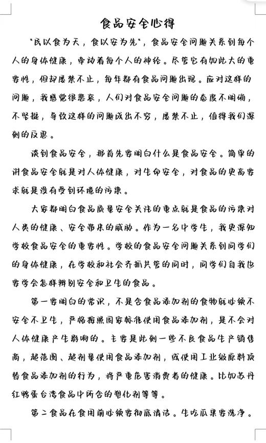 二、关注食品安全的心得