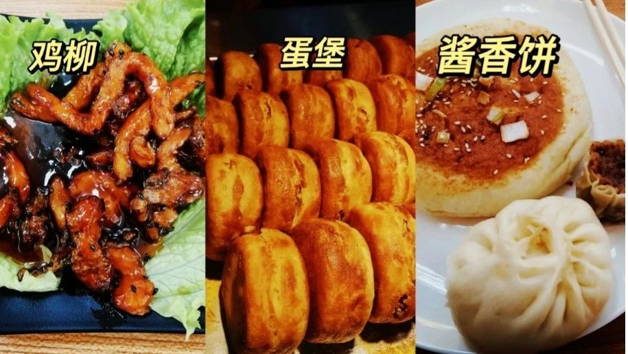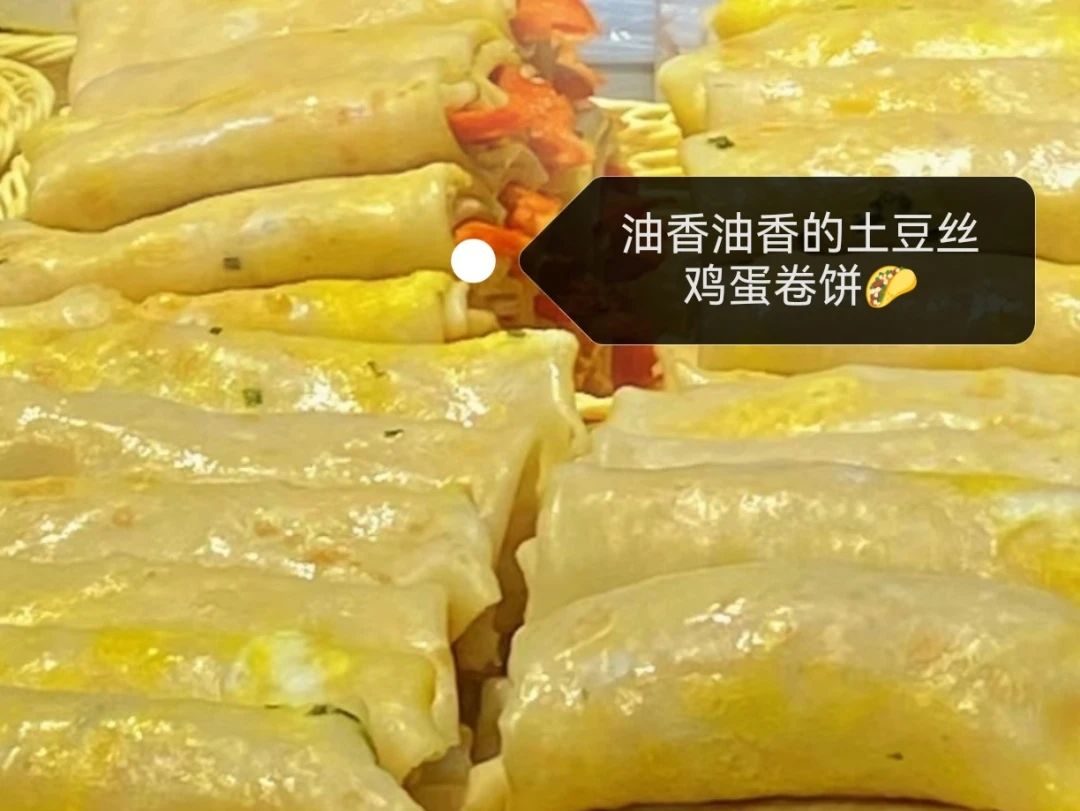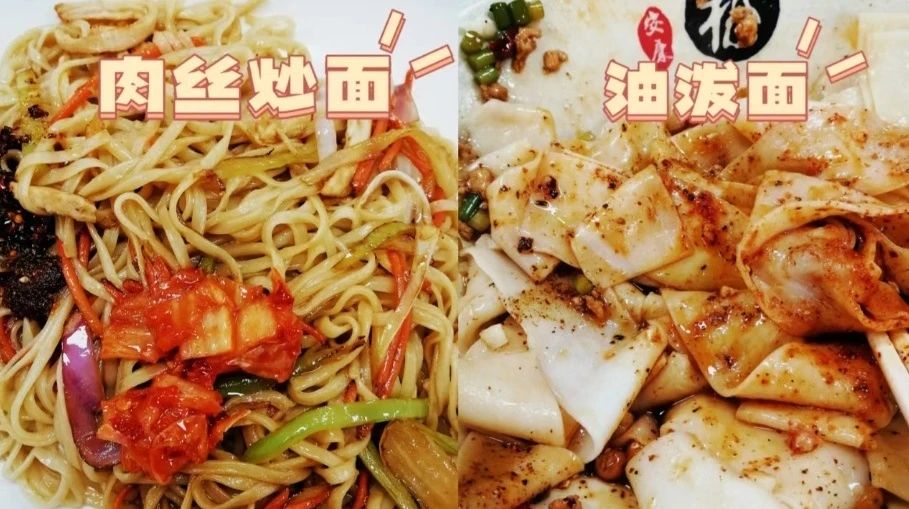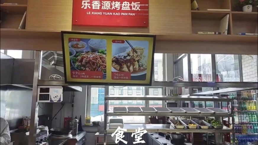 土豆粉、肉蛋堡、米线、鸡腿饭、紫菜包饭、凉皮、肘子饭、鸡柳饭、水饺、烤饼、烤鱿鱼、板面、干锅菜花、水煮鱼、水煮肉片、寿司、拌饭、蛋糕、三明治、自选盒饭、炸鸡汉堡、奶茶、冰激淋、水果捞......