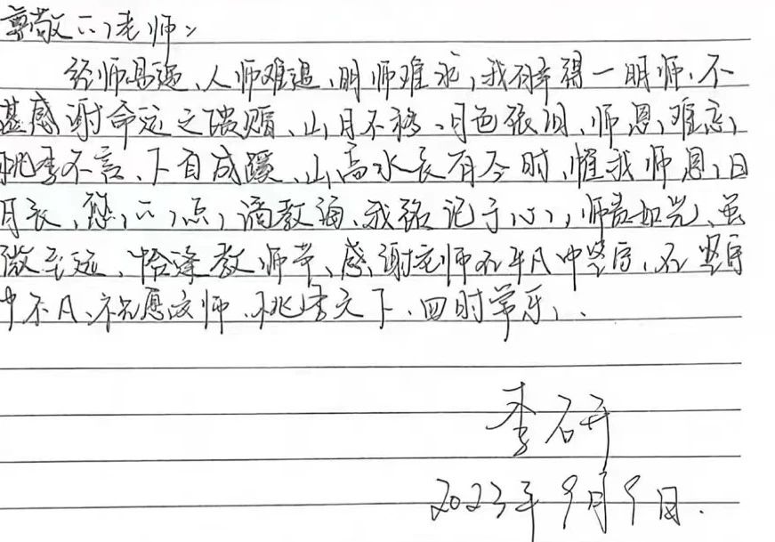 “桃李无音,明月随心,盛行千里,不忘师恩。”纵使锦书也难以准确表述心中感谢,难忘师长坚守岗位,用心浇灌每一位同学的成长。(一审:刘烁 二审:苏鸿鹏 三审:徐媛)