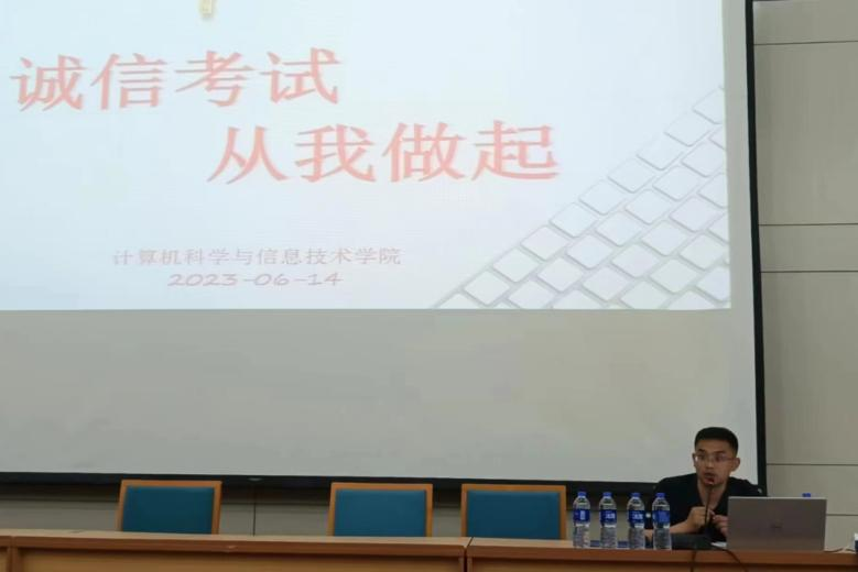 诚信考试,是责任感的体现,诚信应考,是道德品格的体现。为进一步加强学院学风建设,严肃考风考纪,加强诚信教育,1946伟德国际源自英国于6月14日召开考前动员大会。本次大会由2020级辅导员苏鸿鹏老师、2021级辅导员杨小丽老师以及2022级辅导员刘烁老师共同主持,全体计科学子参加。