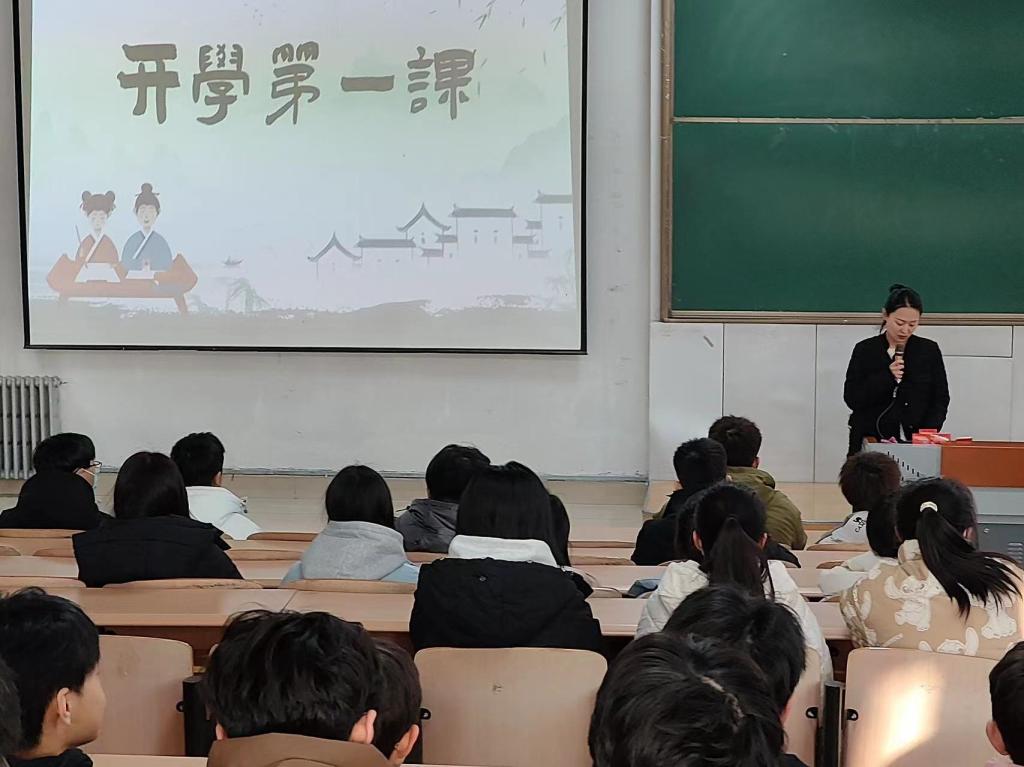 辅导员老师带领同学们对上学期班级工作内容进行回顾,并对新学期作出展望,引导学生进一步明确自身目标,尽快进入学习状态,通过调整生物钟、制定新学期学习计划等方式进行自我心理调适,以积极的心态迎接新学期的到来。