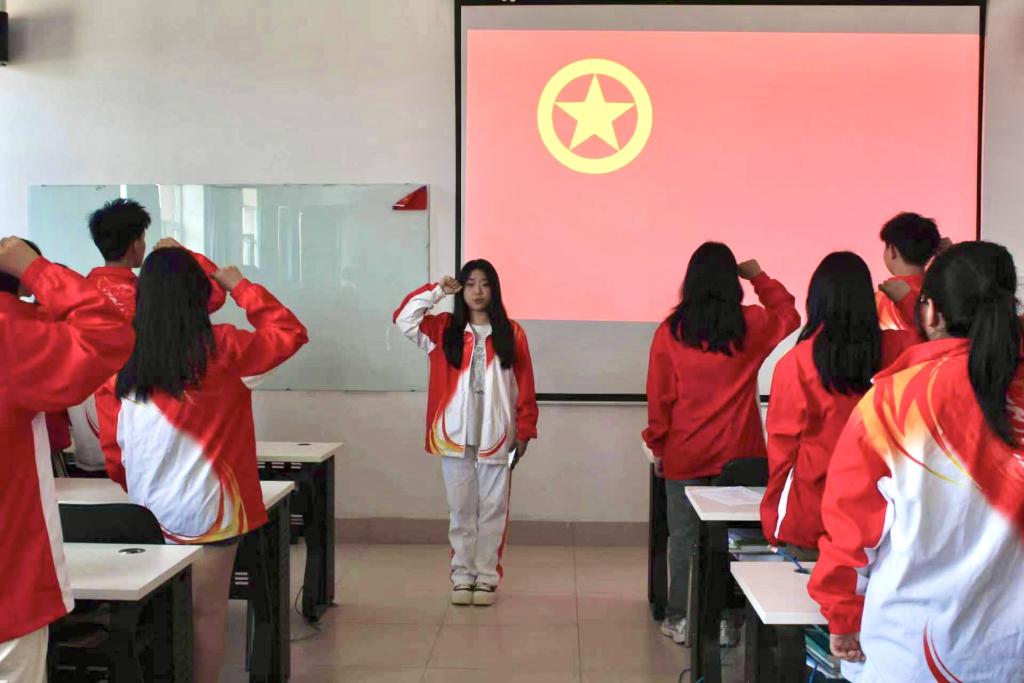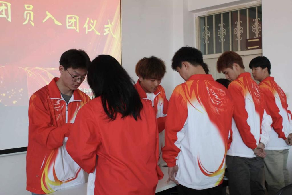 新团员入团仪式在庄重国歌声中开启。杨小丽老师宣布新团员名单后,团徽由团员代表颁发且进行佩戴。随后,领誓人王欣妍宣读誓词,新团员举拳宣誓,声音洪亮,眼神满是憧憬。新团员代表曹瑞、优秀团员代表孔令然依次发言。杨小丽老师更是满怀信任与期望,希望新团员牢记身份、忠诚组织,做到严于律己、宽以待人,勤奋进取、勇克困难。最后全体起立唱团歌,仪式在嘹亮团歌中落幕。