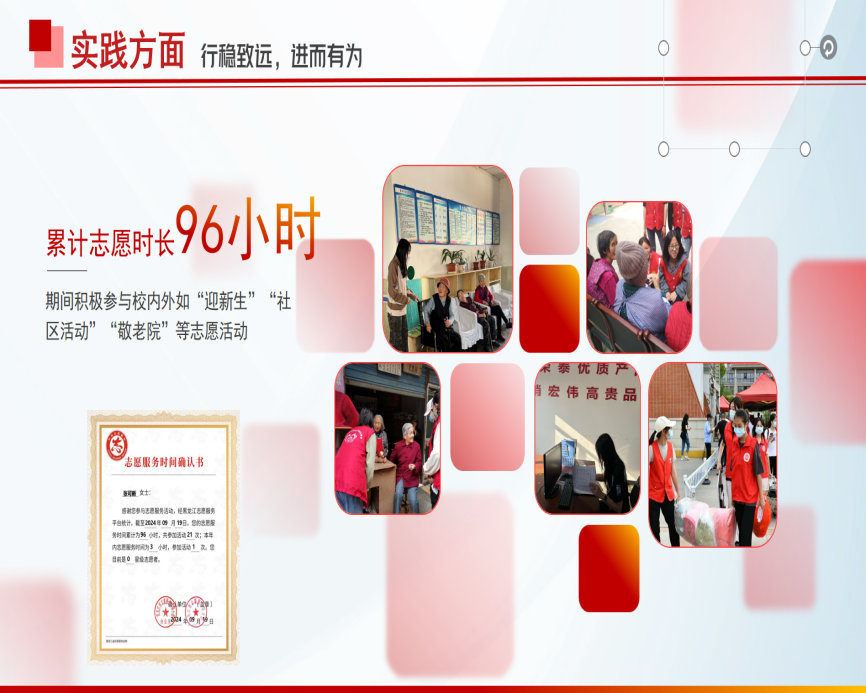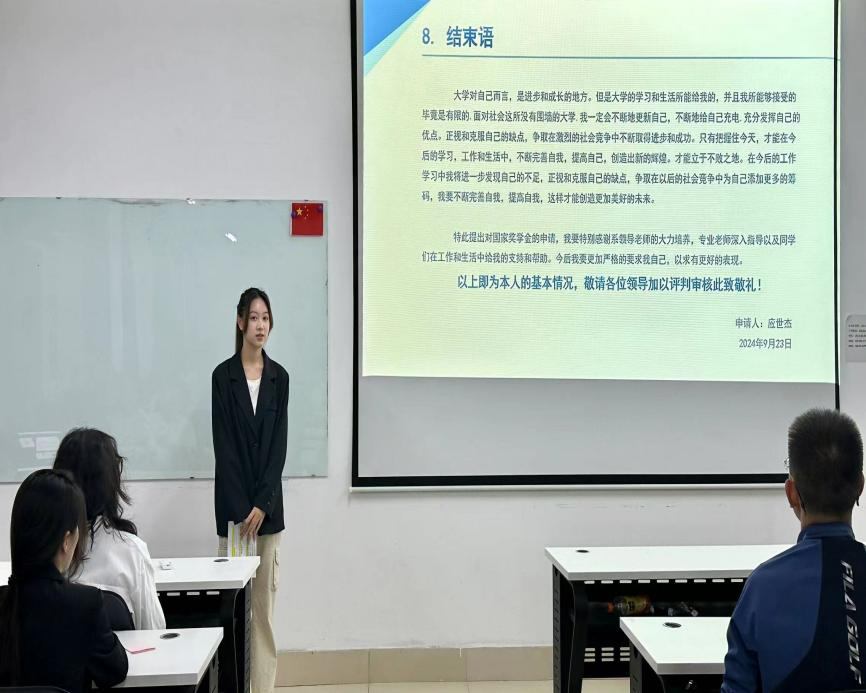 答辩环节中,候选人分别从思想品德、学科竞赛、实习实践、志愿服务等方面展示自己所取得的突出成绩。他们不仅分享了自己在学习上的优异成绩和丰硕成果,还展现了在志愿服务、社会实践中的积极表现和无私奉献精神。