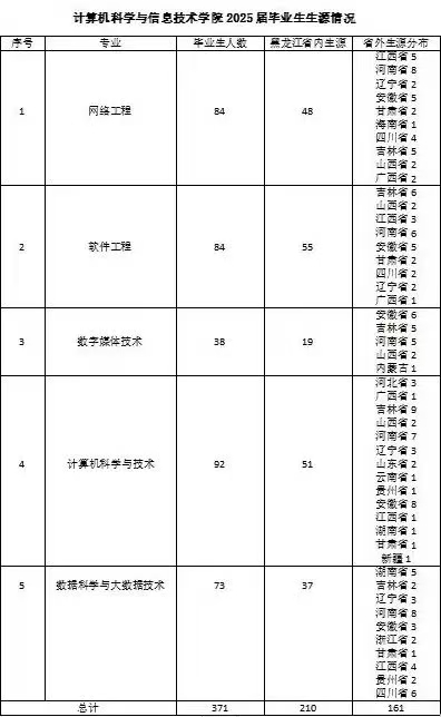 本专业依托学院计算机学科传统优势,借助数学、机电学院等学科资源,将建立“地方性、应用型、信息化、开放式”专业作为办学定位,以“数据学科理论敦实、工程开发能力全面、市场需求结合紧密”为导向,采取产教研融合人才培养模式,与华为云数据中心、大庆油田通讯公司等企业开展合作,培养掌握数据科学的理论与方法,熟练掌握大数据采集、清洗、存储、处理与分析、可视化与应用等技术,具备面向大数据的挖掘与分析能力,能胜任大数据工程相关工作的应用型专门技术人才。