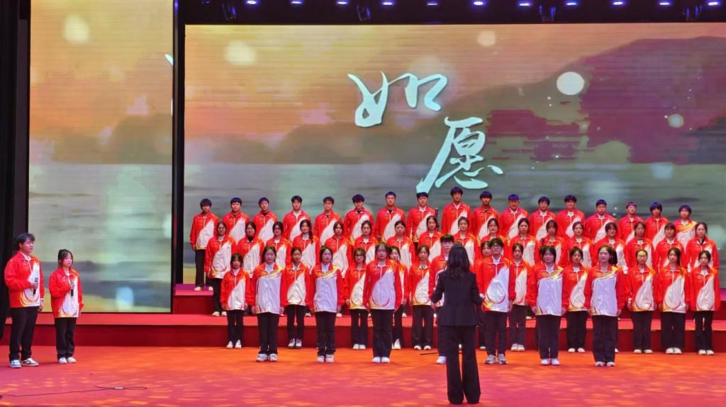 表彰大会在全体学生工作组织人员的合唱歌曲《如愿》中落下帷幕。颂赤子丹心,寄盛世芳华。同学们表达了对先辈深深的敬意和感恩之情,唱出了青年学子的责任与担当。新时代永远是奋斗者的时代,让我们勇敢地追逐自己的梦想,让所有的美好都能如愿以偿。