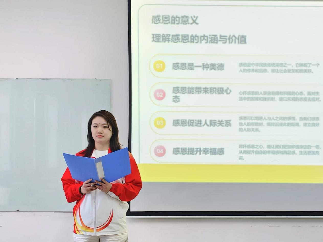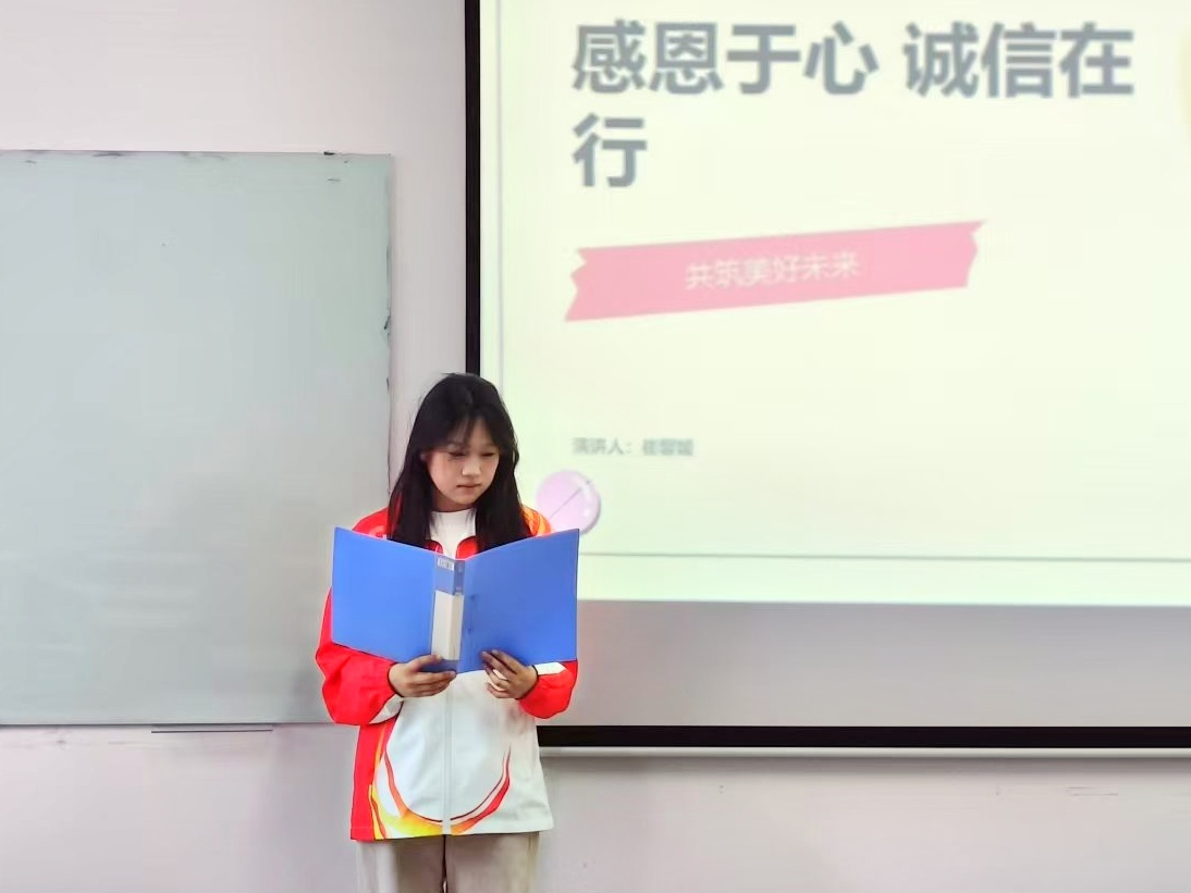 会上,宣讲人围绕感恩的力量、诚信的价值、感恩与诚信的关系、如何践行感恩与诚信等方面展开了详细讲解。引领同学们不断反思自身行为,逐步驱散认知上的迷雾,层层深入强化诚信、感恩观念。呼吁同学们将诚信、感恩铭记于心,践行于外,让诚信与感恩之花在生活的各个角落绚烂绽放。