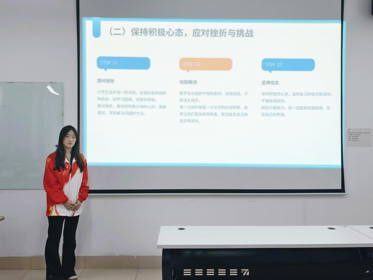 在分享会上,向烨同学以奋进之姿,在学业、竞赛、实践交织的青春画卷中铺展成长之路。并结合自身经验,向同学们提出几点建议:一是明确学习目标,将长远规划细化为短期任务,以兴趣驱动学习;二是积极参与学科竞赛,以赛促学,在实战中提升专业能力;三是主动拓展成长边界,通过参加暑期三下乡、志愿服务、社团活动等,提升沟通协作能力与社会责任感,实现个人综合素质的发展。