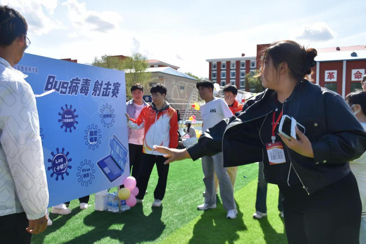 “BUG病毒射击赛”将“Virus(病毒)”“Lag(卡顿)”等计算机术语与“消沉”“emo”等负面词汇设计为射击目标,让同学们在趣味射击中释放心理压力。活动现场氛围热烈,庆师学子踊跃参与,在此过程中锻炼专注力与抗压能力,同时在欢笑中收获心灵成长。