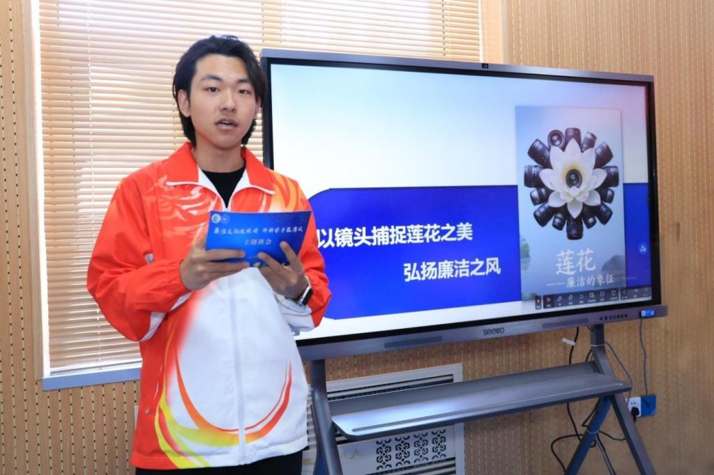 主题班会上,由六组学生代表为我们带来海报设计展示与理念分享。他们分别从《代码铸廉魂,数据扬清风》、《智数青山,方正为人》、《以镜头捕捉莲花之美,弘扬廉洁之风》、《代码为盾,廉洁为魂》、《代码有规矩,人生有方圆》、《代码为公,廉洁为魂》六个主题进行阐述,将代码逻辑、数据伦理与廉洁理念深度结合,生动地诠释了“廉洁”的内涵与意义。