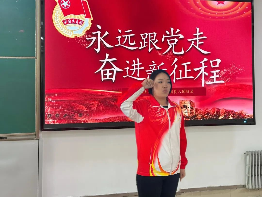 宣誓完毕,新团员代表齐浩东发言,表示将以入团为人生的新起点,继承和弘扬五四精神,坚定理想信念,在团组织的引领下锻炼能力、勇挑重担,努力成为“有理想、敢担当、能吃苦、肯奋斗”的新时代好青年。优秀团员代表胡月彤祝贺新团员加入共青团,并分享了自己在团组织中的成长经历,鼓励新团员珍惜青春时光,勇担时代使命。