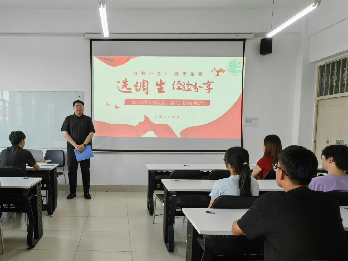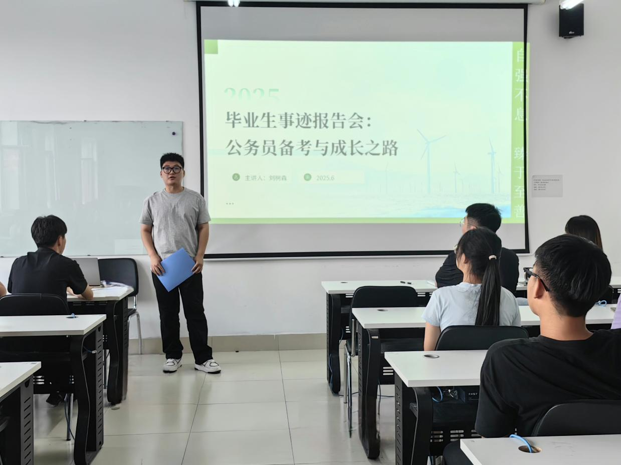 会上,学院2025届考研、国企就业、考公、选调生等不同发展方向的优秀毕业生代表,以线上线下相结合的方式,分享了在学习方法探索、实践能力提升、求职道路选择等方面的成果与感悟。他们以“前浪”身份为参会同学带来实用成长指南,从学业规划到职业选择,从能力提升到心态调整,每一句都传递着砥砺前行的信念与力量,为同学们的成长之路点亮明灯。