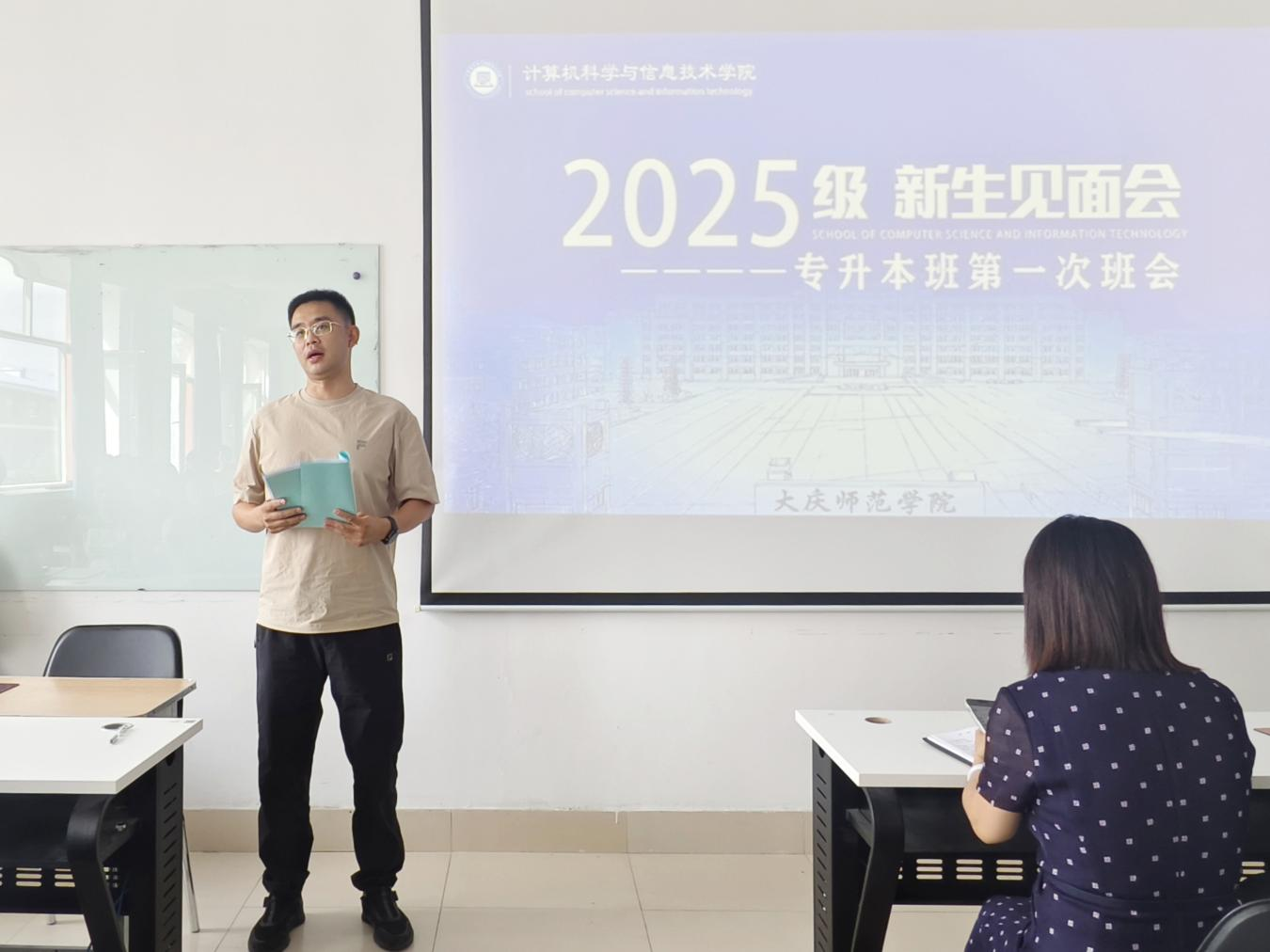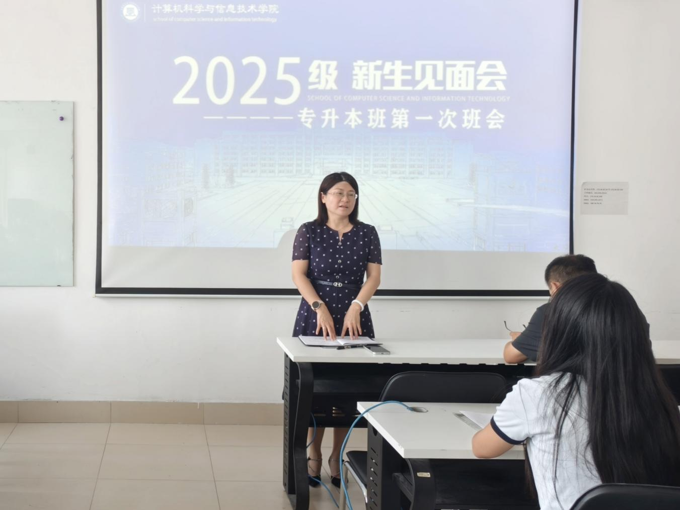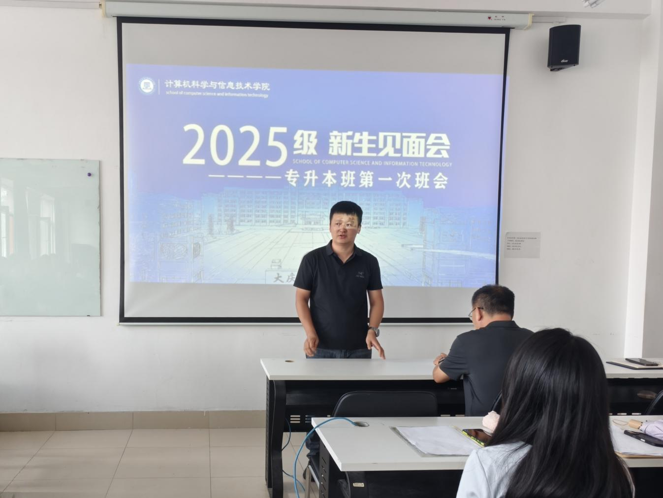为帮助2025级专升本新生快速熟悉学院环境、明确学习生活方向,8月31日,1946伟德国际源自英国在计算机楼306教室召开专升本新生见面会,本次会议由辅导员闫令文主持。院长王健、学院党总支副书记刘彰基、副院长贾美娟、副处级辅导员吴鹏、学生工作办公室副主任苏鸿鹏、全体辅导员与专升本新生共同参加。