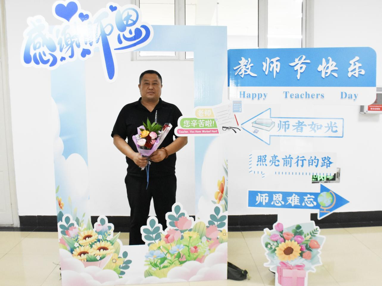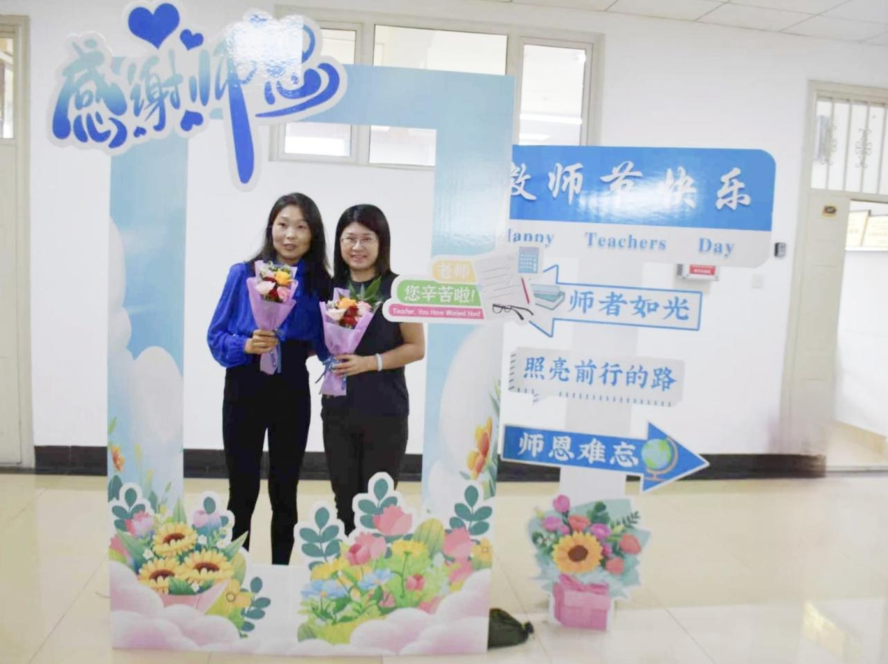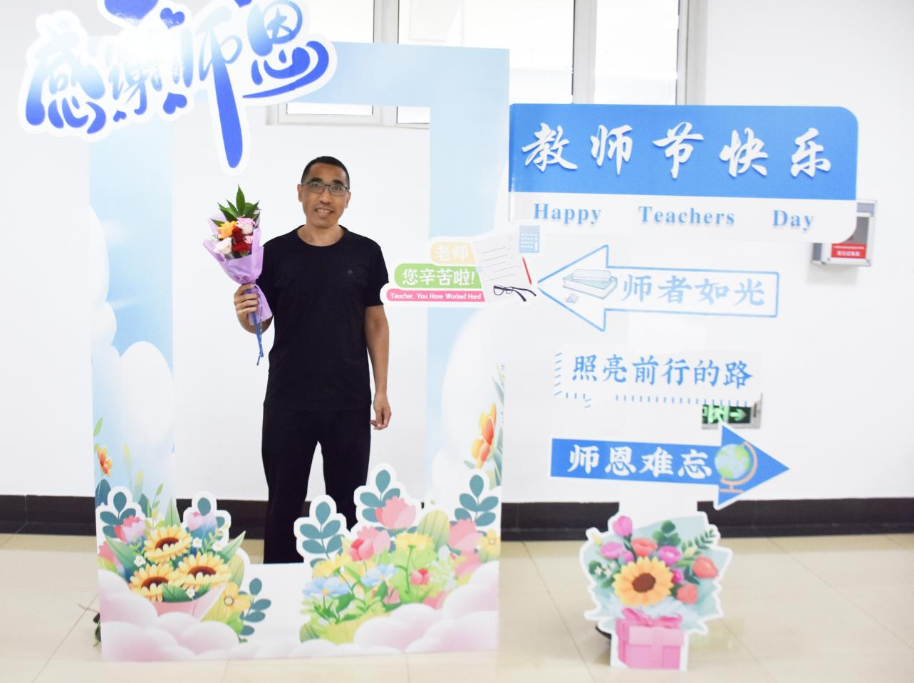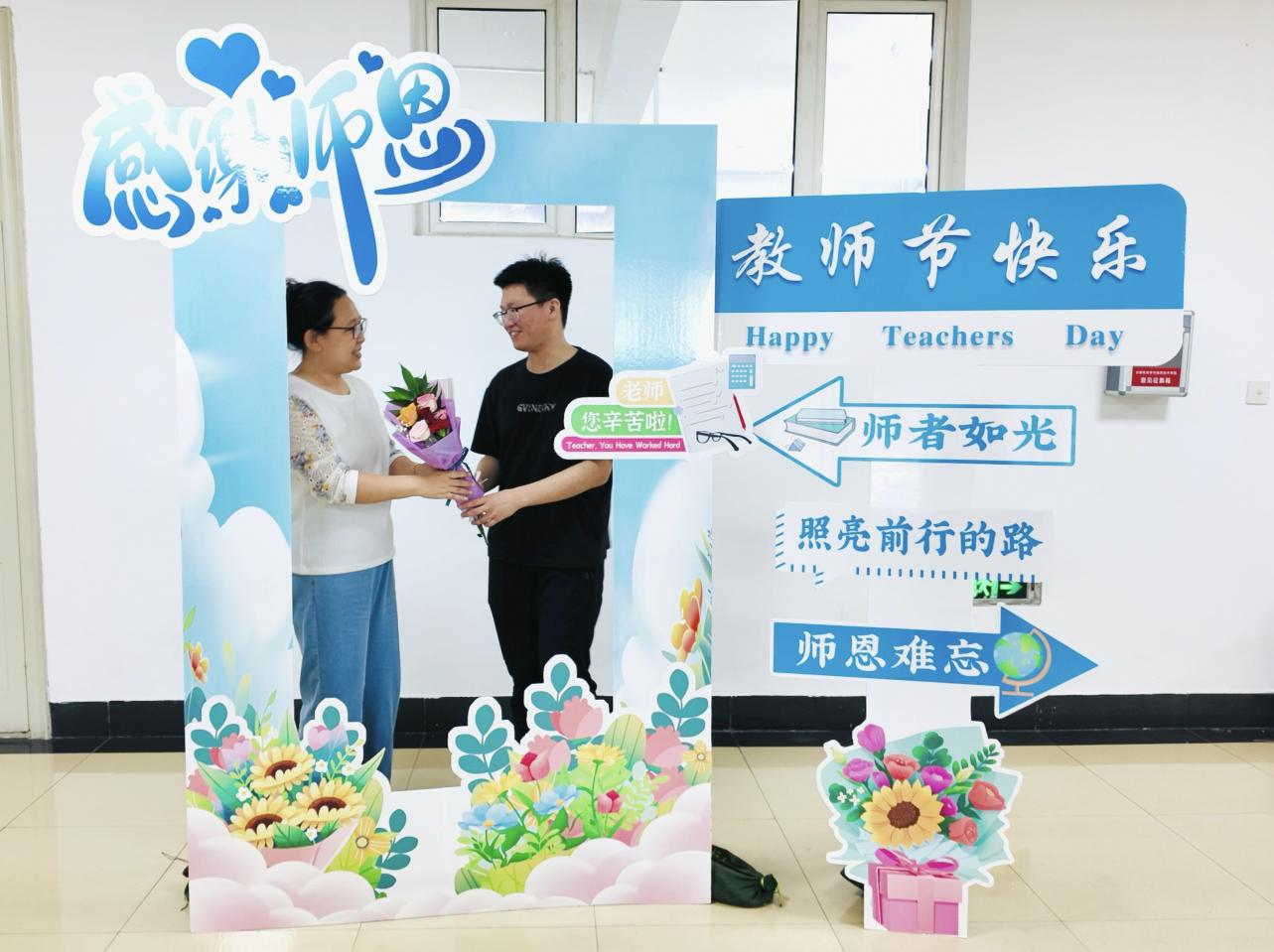 学院打造了主题鲜明的教师节打卡点,打卡板上的祝福语表达了学院对全体教师的节日问候,传递出尊师重教的浓厚氛围。全体教师积极参与,在打卡点前驻足拍照,定格属于教育工作者的荣耀时刻,用轻松愉悦的方式感受学院的关怀与祝福,进一步增强了教师群体的归属感与幸福感。