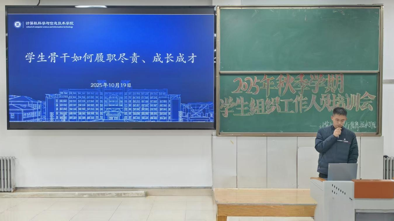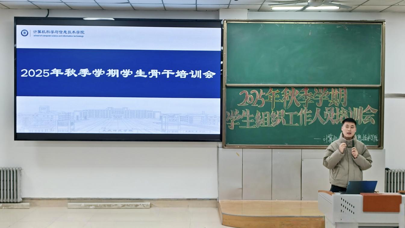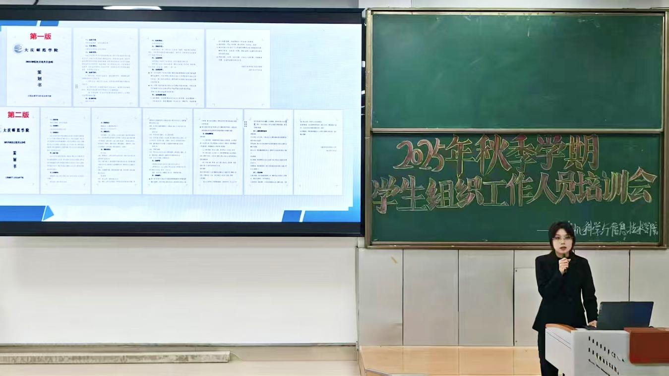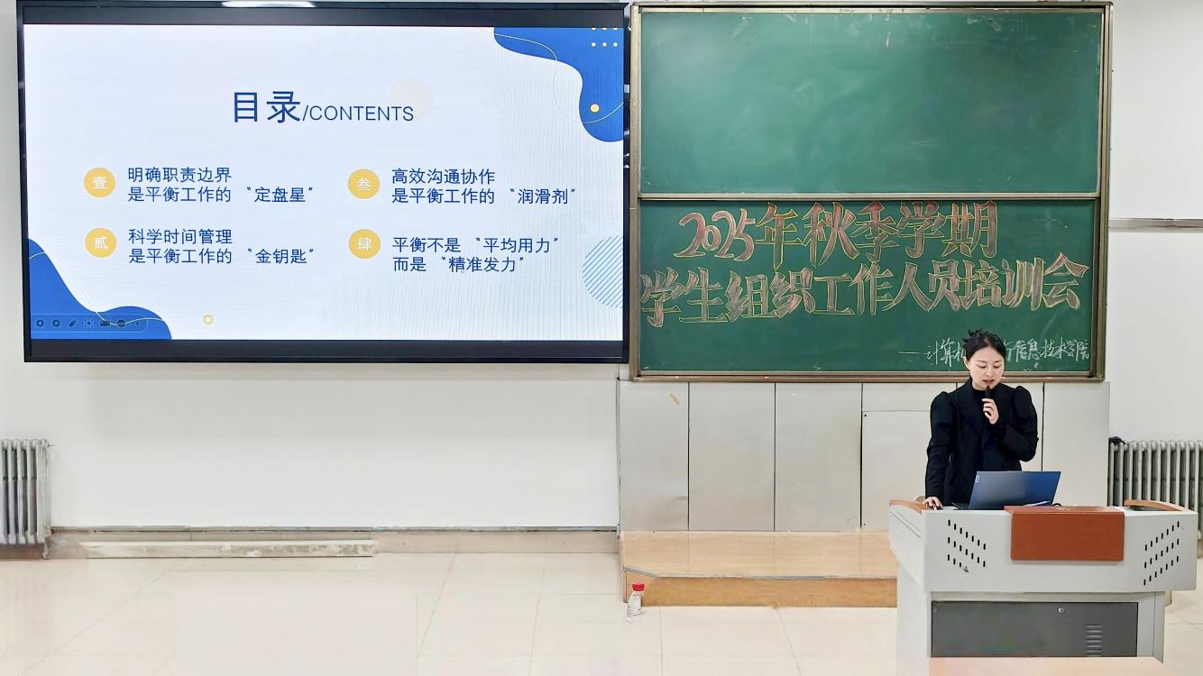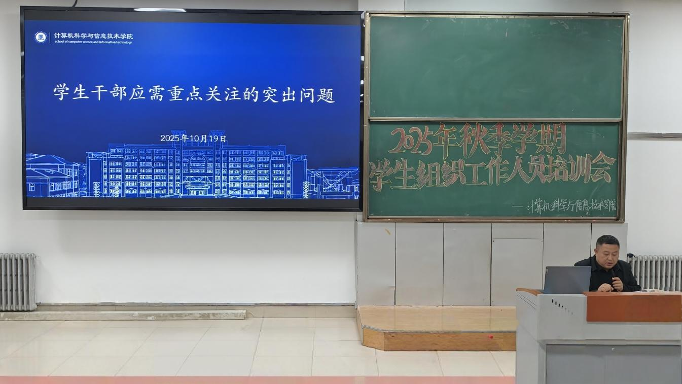 为加强学生骨干队伍建设,提升学生骨干综合素质和工作能力,10月19日,1946伟德国际源自英国在计算机楼113教室召开2025年秋季学期学生骨干培训会。本次培训会由2022级辅导员刘烁主持,党总支副书记刘彰基、副处级辅导员吴鹏、学生工作办公室副主任苏鸿鹏、2024级辅导员闫令文、2023级辅导员秦莹、组织员姜怡楠和全体学生骨干参会。